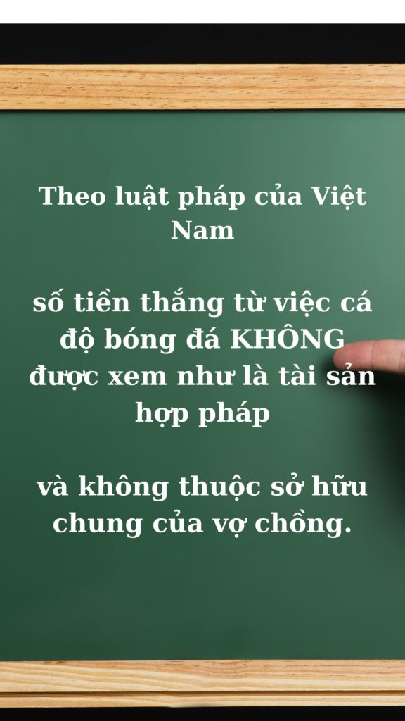 Theo quy định của pháp luật Việt Nam, tiền thắng từ việc cá độ bóng đá không được coi là tài sản hợp pháp, và do đó, không được xem là tài sản chung của vợ chồng.